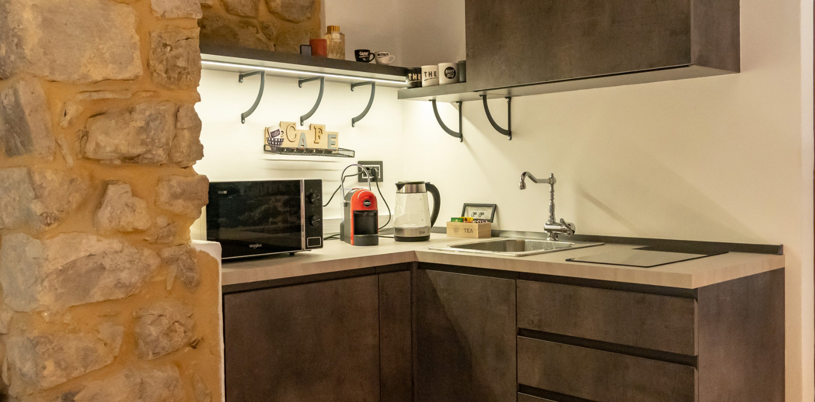 Potrai godere di un’atmosfera intima e tranquilla in un appartamento dotato di camera da letto, angolo cottura, bagno con cromoterapia, ed accesso riservato alla sauna privata e alla piscina interna.